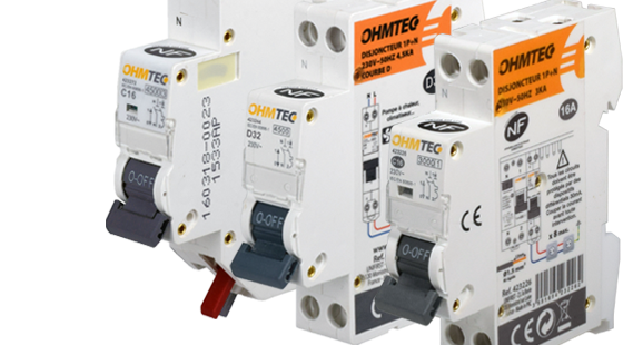 Interrupteur différentiel du 25A au 63A en monophasé, 40A et 63A en triphasé. 3 gammes de disjoncteurs, 3kA à vis, 4,5kA à vis et 4,5kA à connections automatiques. 2 références en courbe D (20A et 32A)