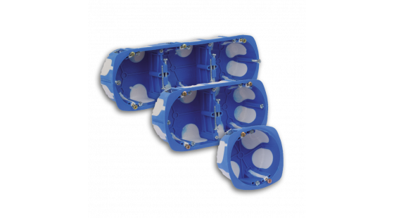 Boite d'encastrement BBC étanche à l'air disponible en simple, double et triple poste. La boite simple se décline en 2 profondeurs (40 et 50mm) pour répondre à tous les besoins de montage d'interrupteur et prise.