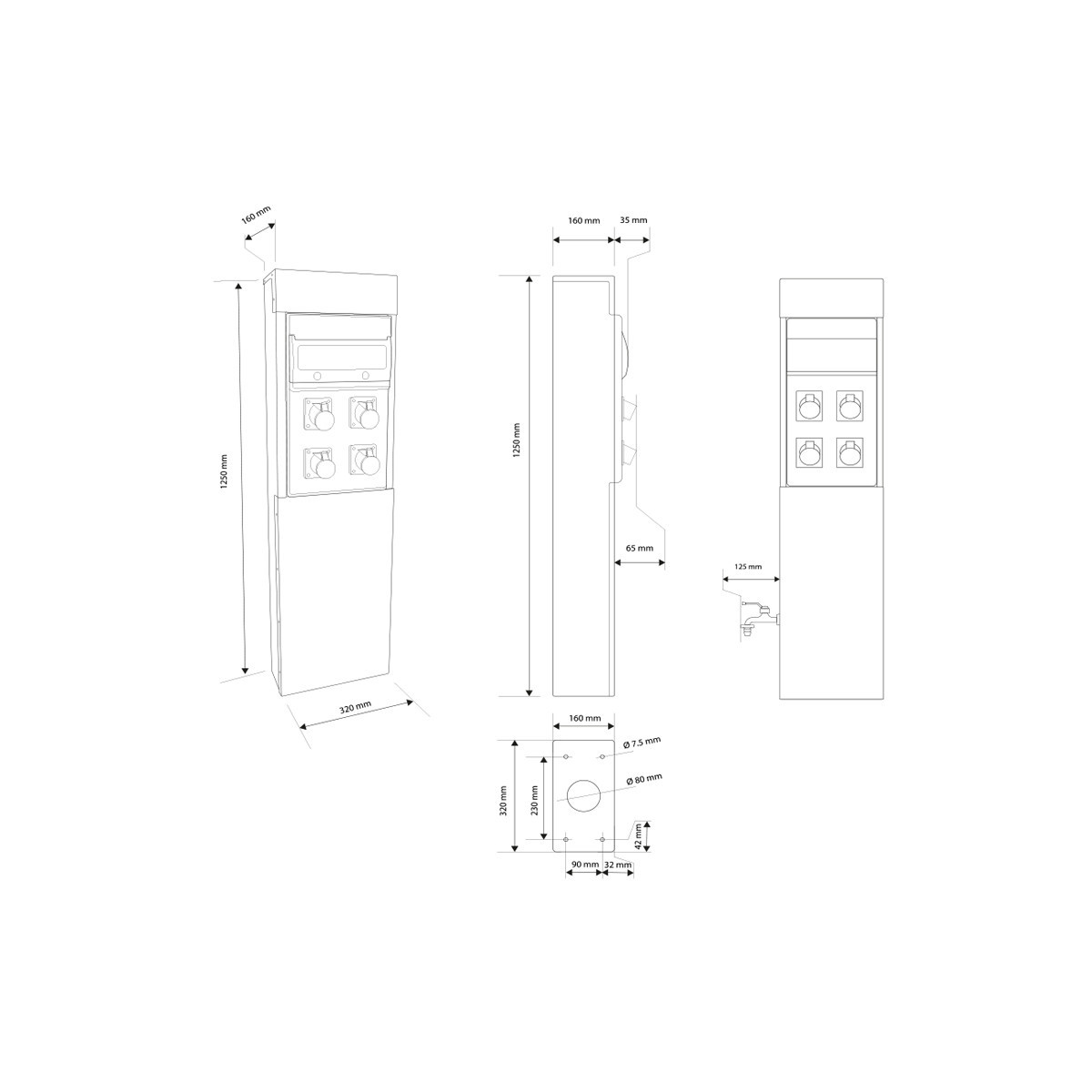 3. Borne de camping métallique avec 2 prises 10A + 1 robinet