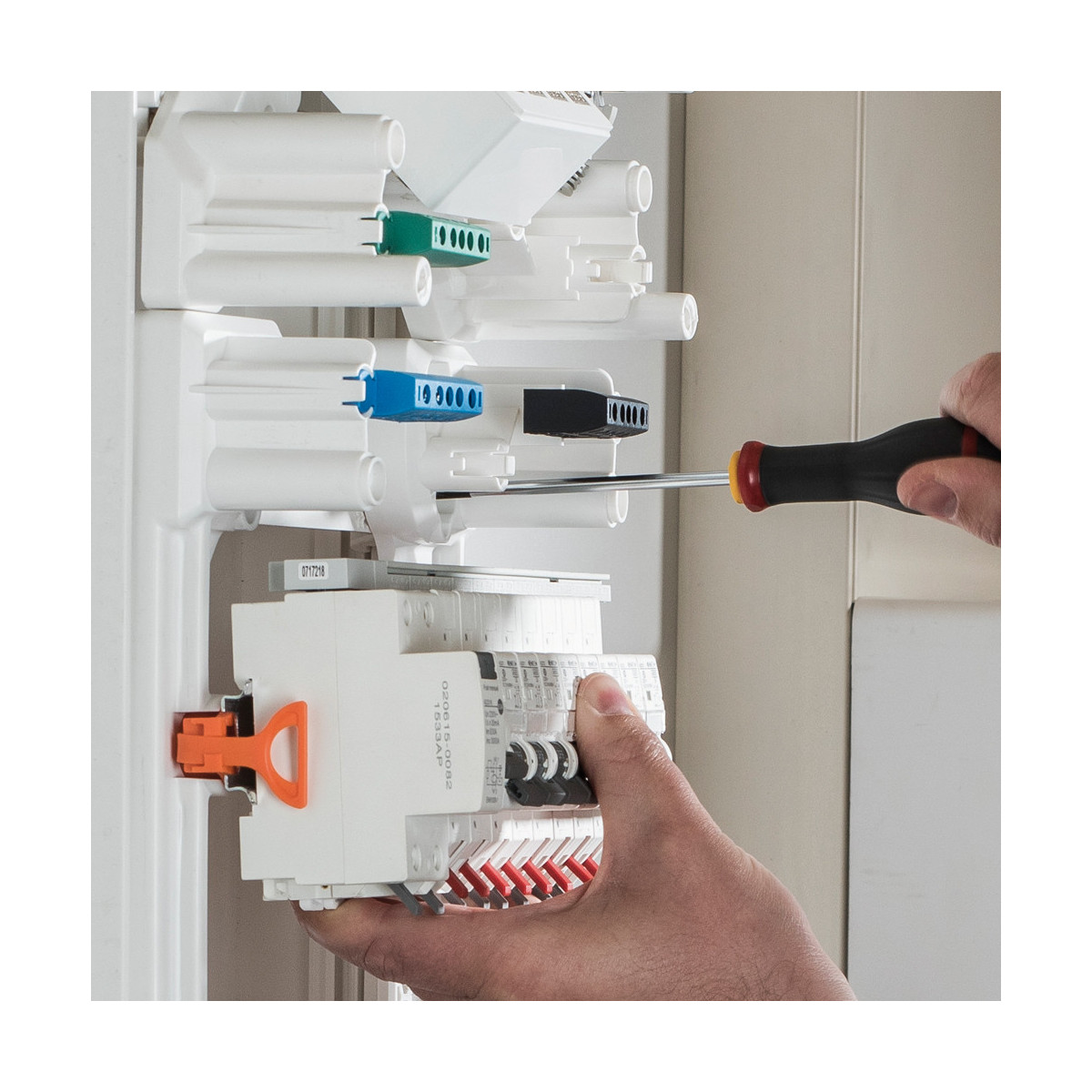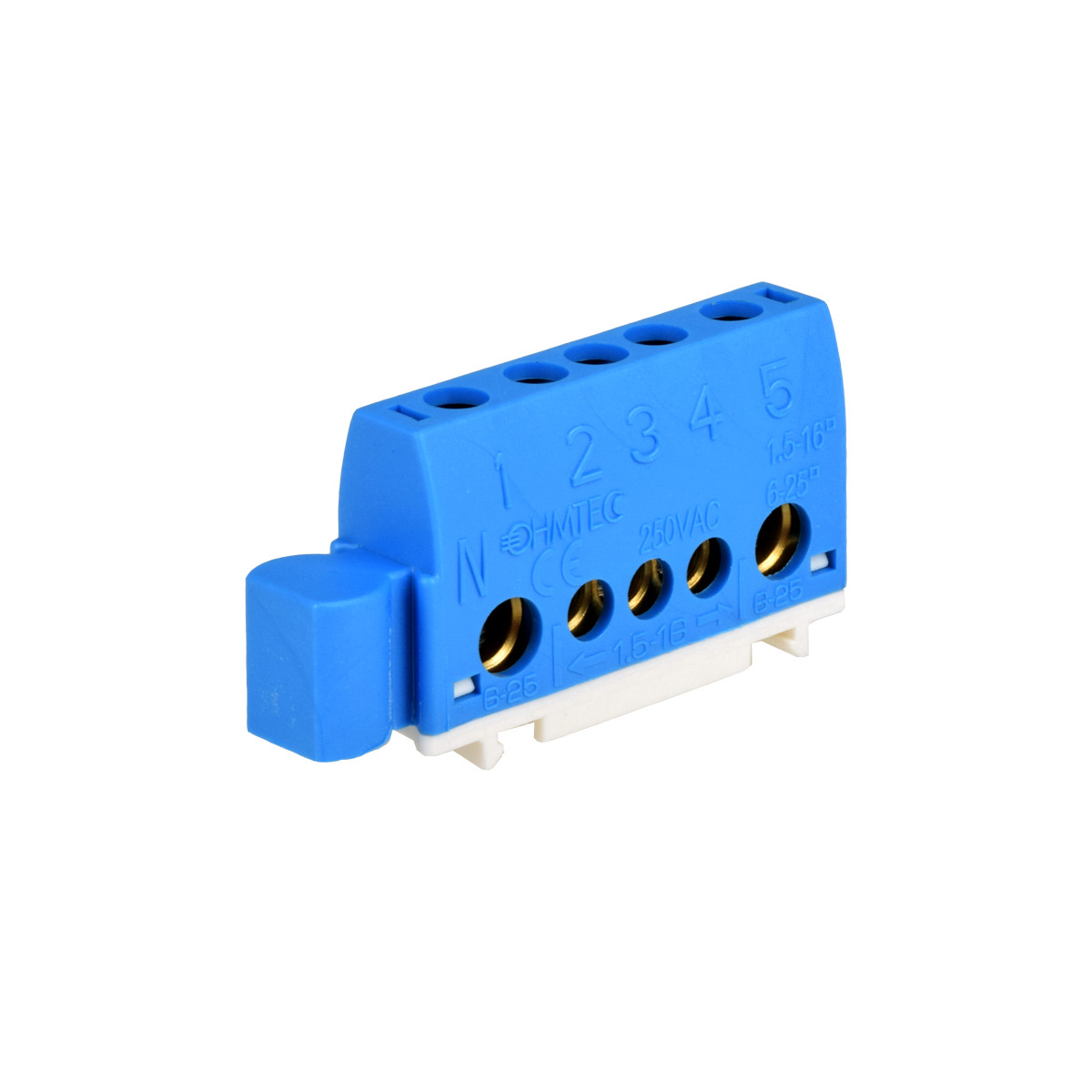Ce bornier de neutre OHMTEC offre des bornes de repiquage supplémentaires. Il est clipsable sur rail DIN ou positionnable dans les emplacements prévus des tableaux OHMTEC