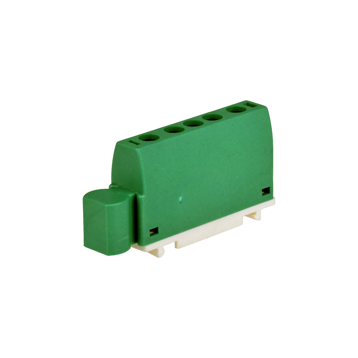 Ce bornier de terre OHMTEC offre des bornes de repiquage supplémentaires. Il est clipsable sur rail DIN ou positionnable dans les emplacements prévus des tableaux OHMTEC