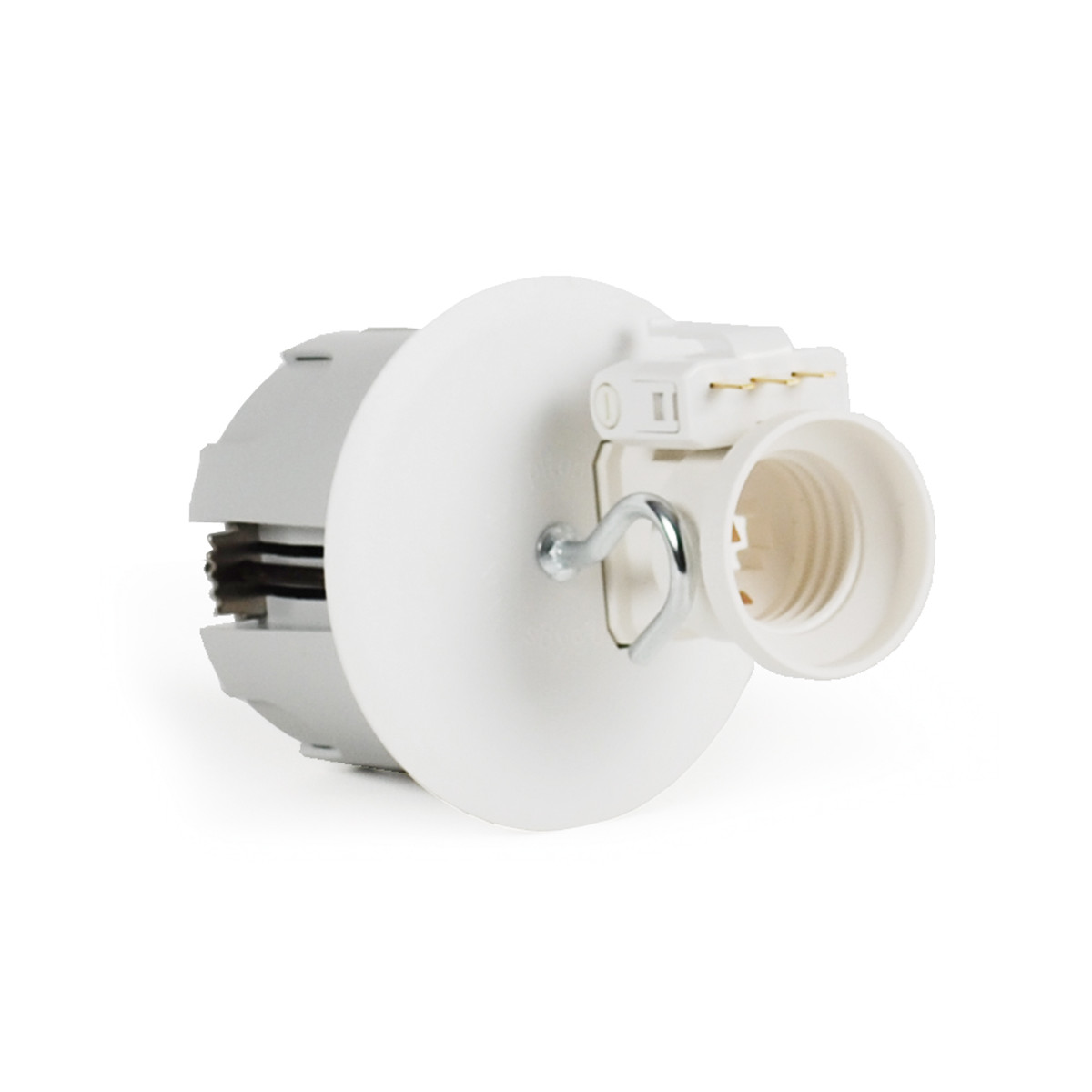 Boite d'encastrement pour plafond. Crochet de suspension jusqu'à 25Kg. Douille E27, et fiche pour luminaire