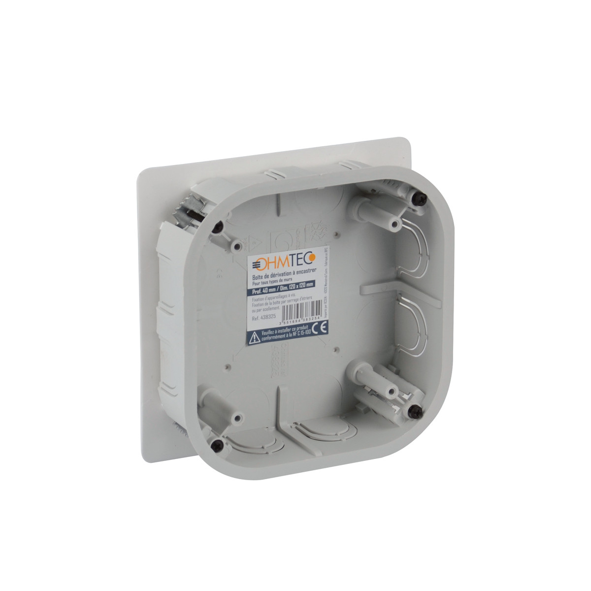 Boîtes à encastrer mixtes pour la dérivation. Serrage par griffes sur cloison de 8 à 18mm. Opercules défonçables pour gaine jusqu' au Ø25mm