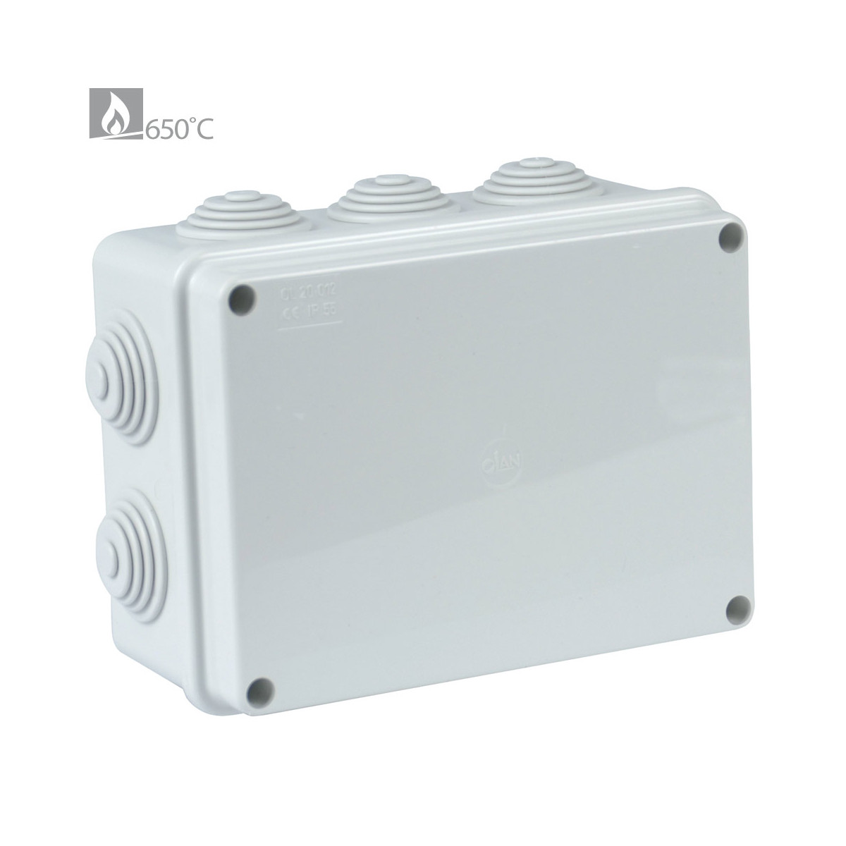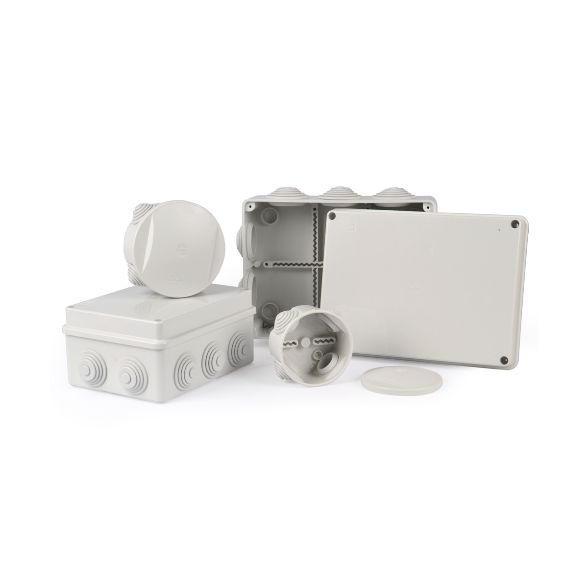Boite de dérivation étanche. Gradins sectionnables à membranes. Utilisation pour des connexions spécifiques, ou l'arrêt de lignes prévisionnelles.