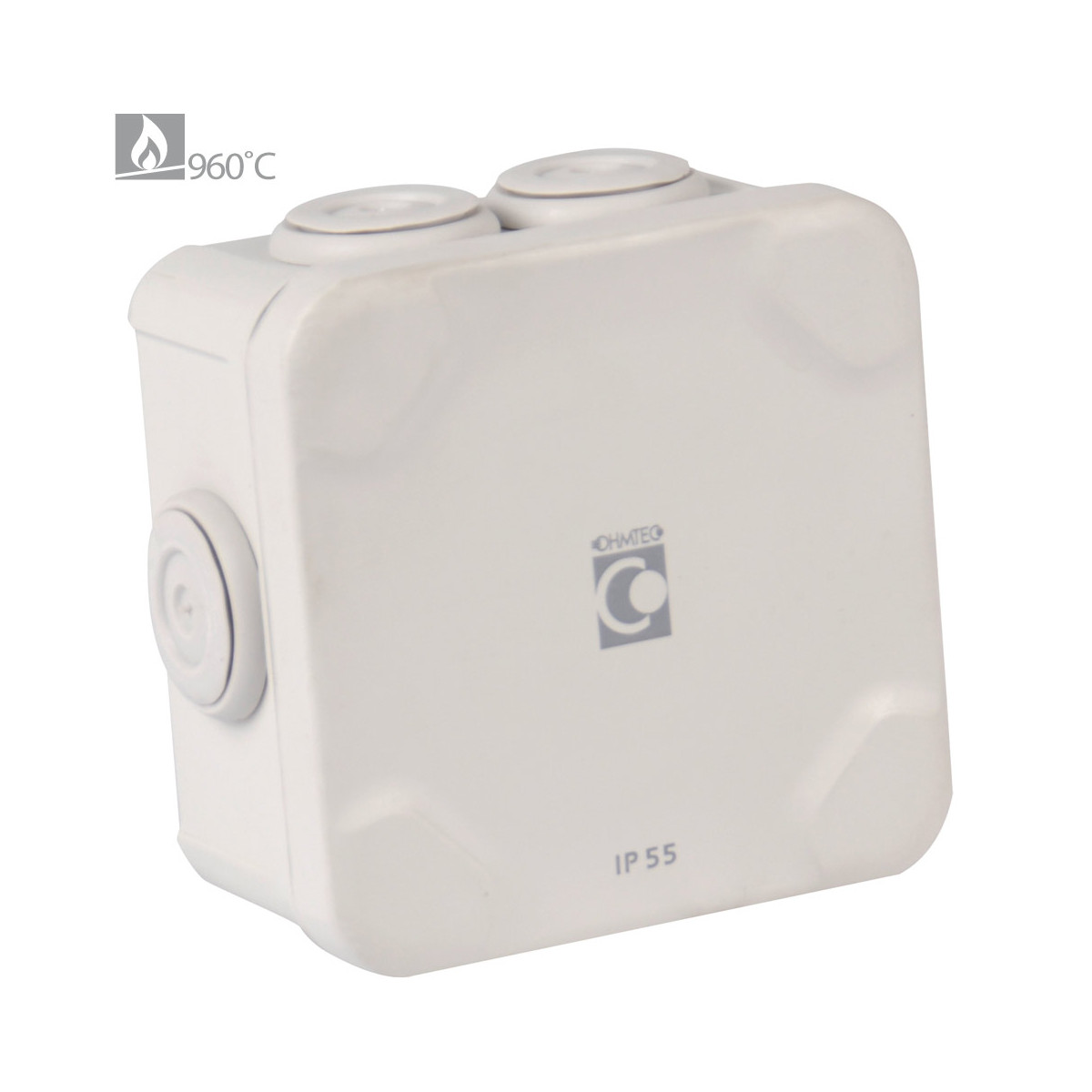 Boite de dérivation étanche. Gradins sectionnables à membranes souples. Utilisation pour des connexions spécifiques, ou l'arrêt de lignes prévisionnelles. Couvercle attaché à la boite lors de l'ouverture. Rattrapage d'aplomb mural. Fixation pour rail DIN afin de fixer des borniers de connexion.