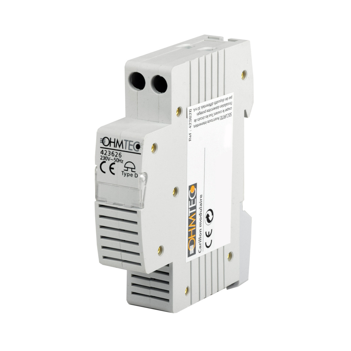 Ce buzzer modulaire 16A OHMTEC est un dispositif modulaire émettant un son de buzzer via un bouton poussoir.