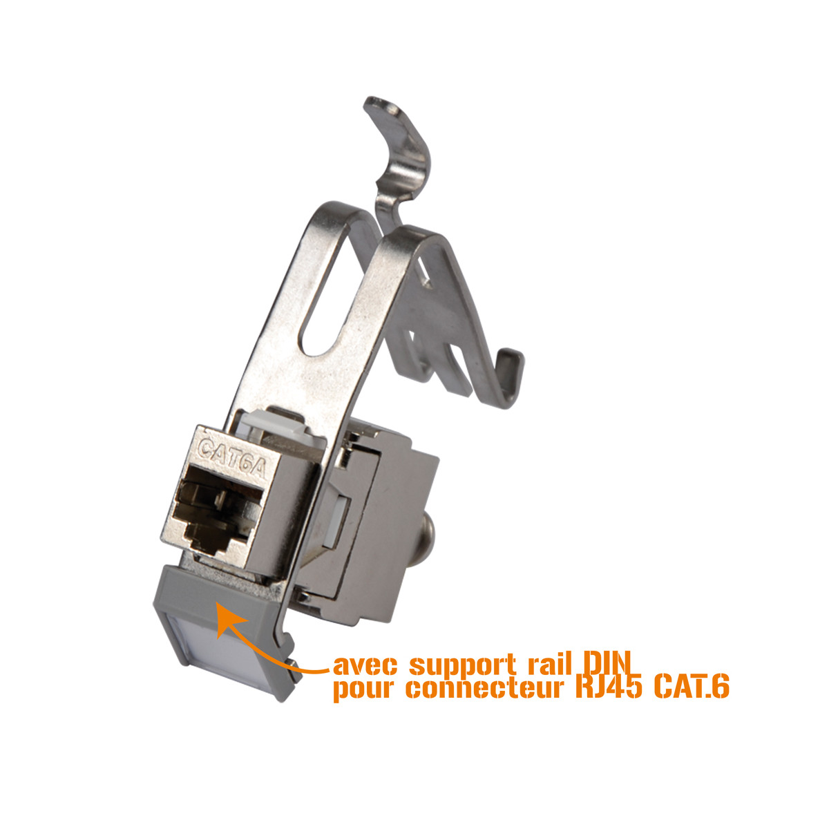 connecteur blindé CAT6 RJ45 grade 3. Se clipse en façade d'un tableau de répartition pour créer une baie de brassage. A associer au support 423159