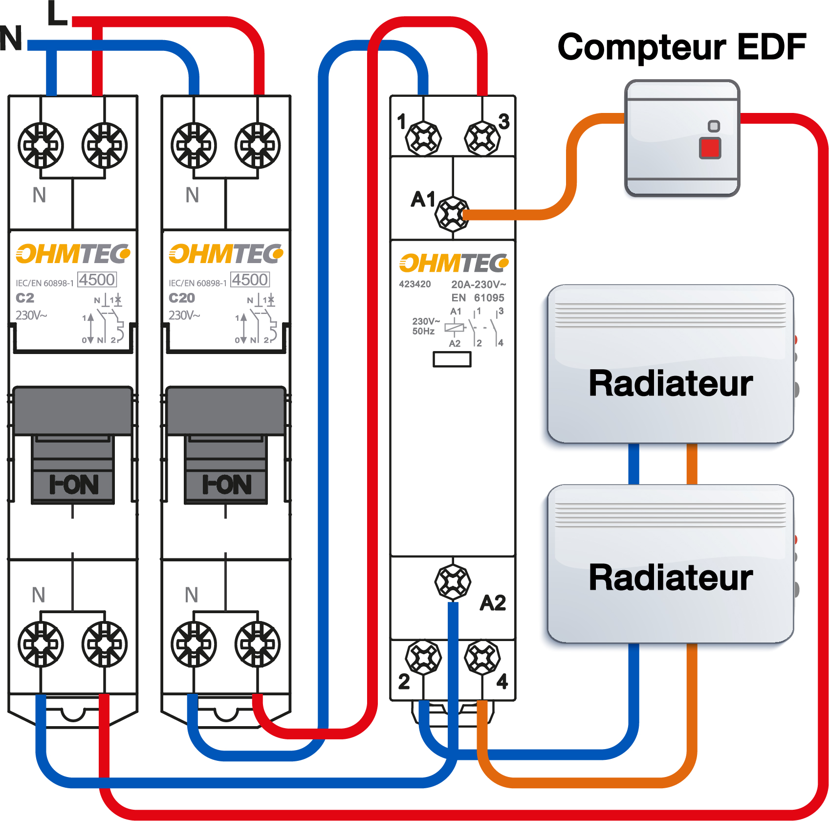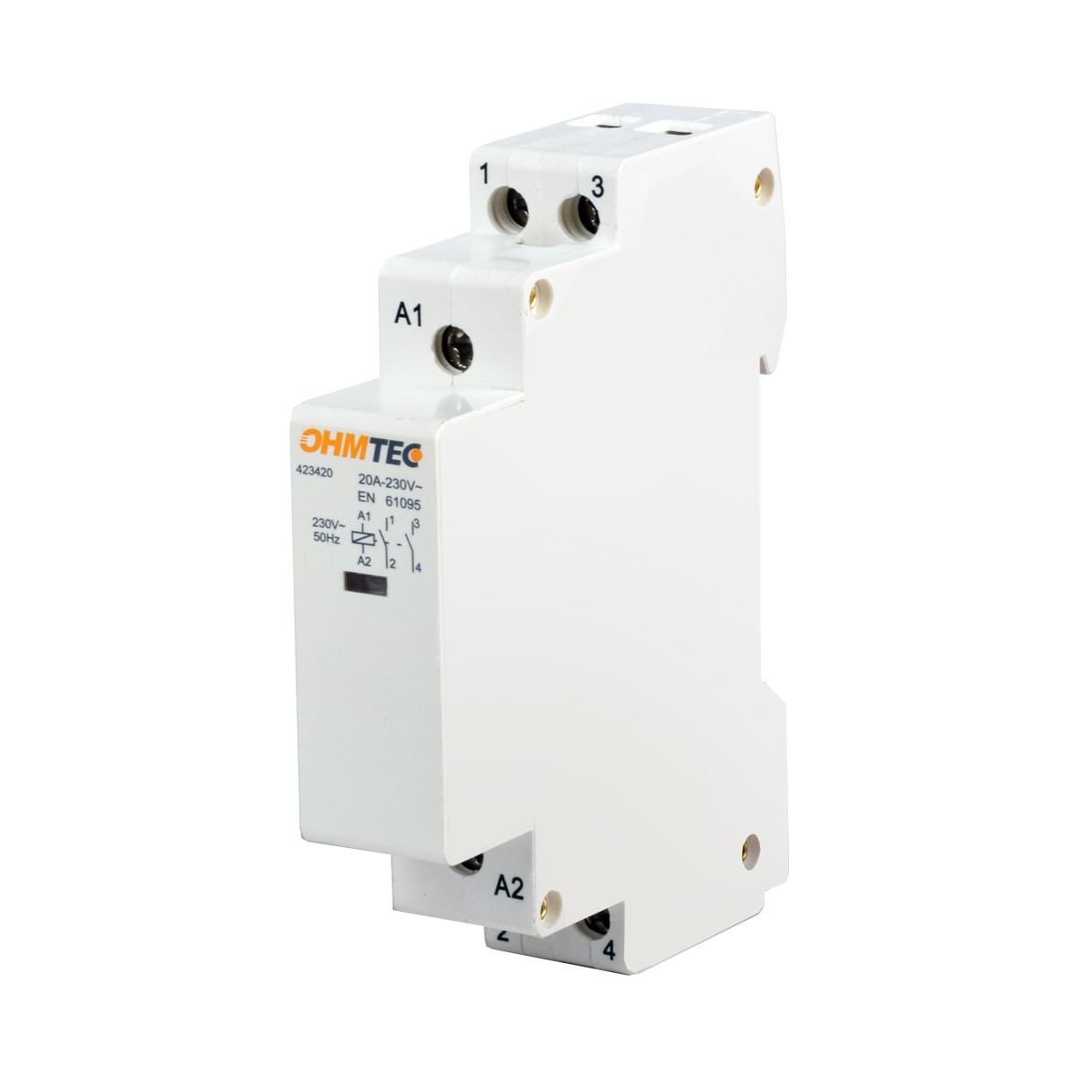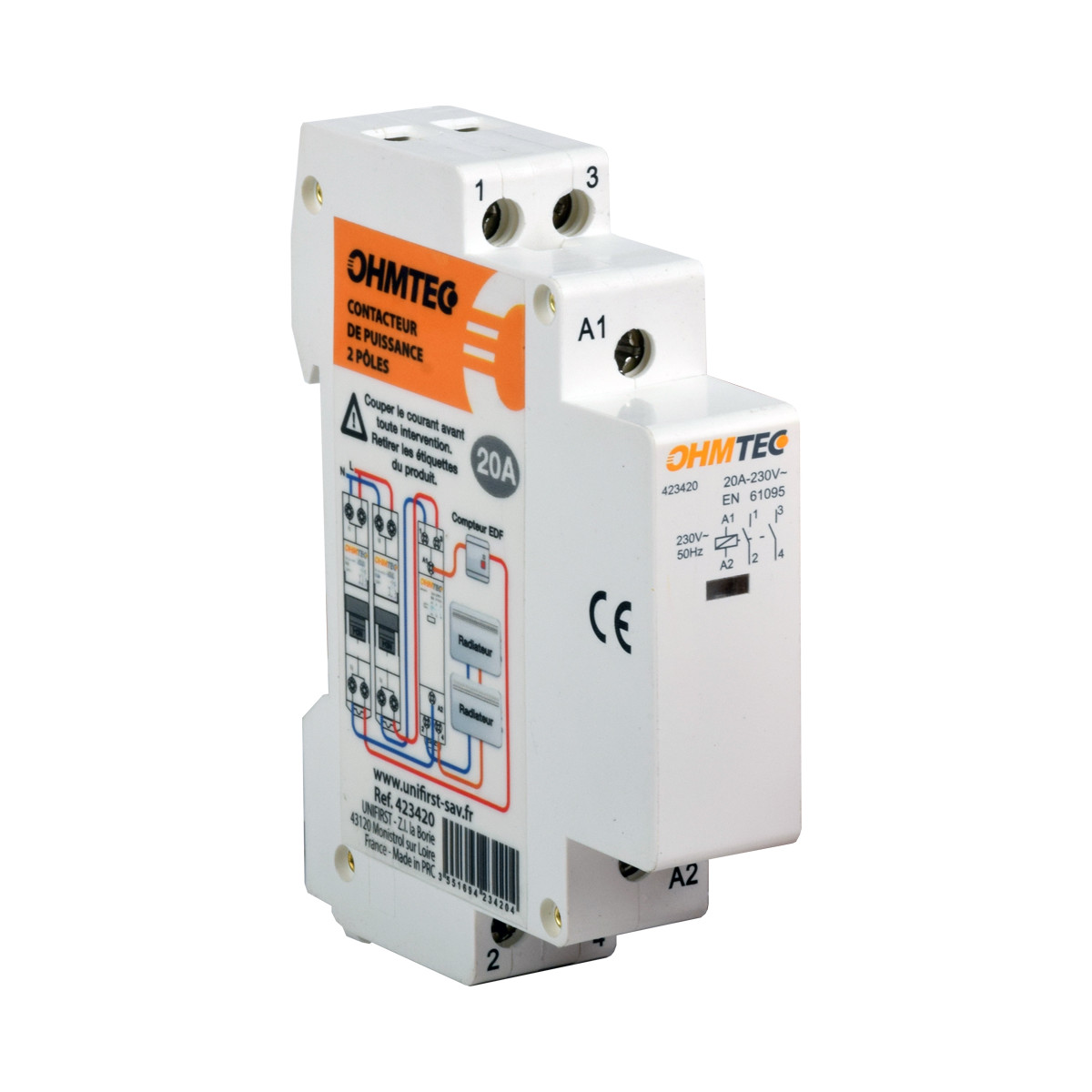 Ce contacteur de puissance 20A OHMTEC est un dispositif modulaire permettant de piloter une charge jusqu'à 4500W via un relai normalement ouvert. Ce contacteur de puissance OHMTEC s'utilise via une horloge modulaire pour piloter un appareil de forte puissance tels qu'une pompe à chaleur, une pompe de piscine ou un radiateur électrique.