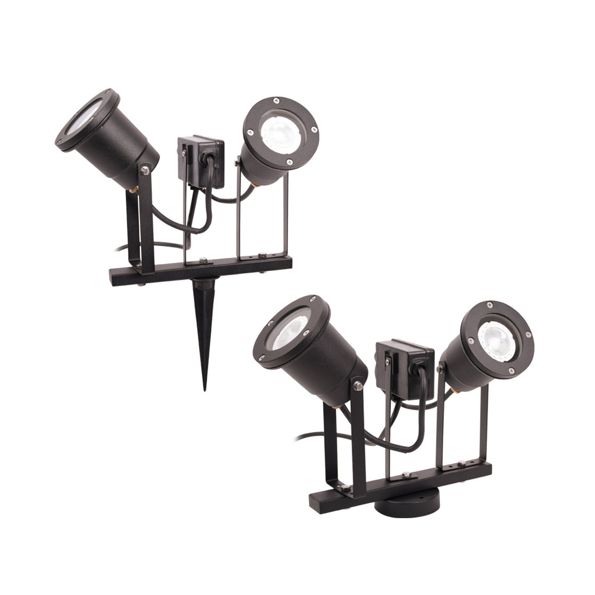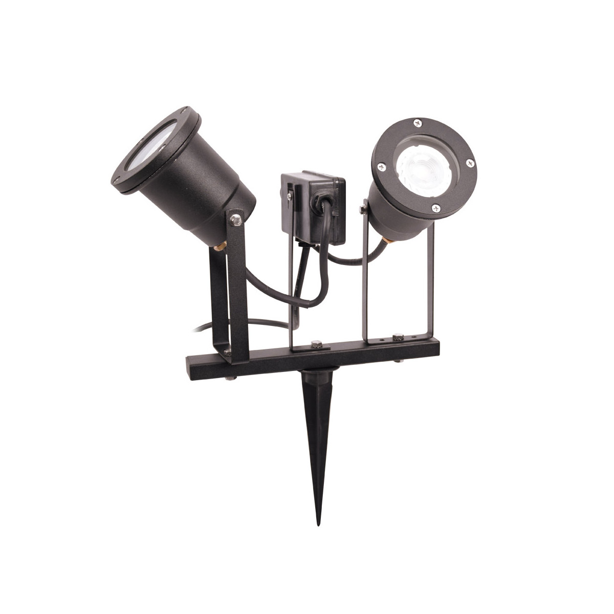 Double spot noir à piquer GU10 2x35W max, 2 ampoules LED SMD 7W fournies.