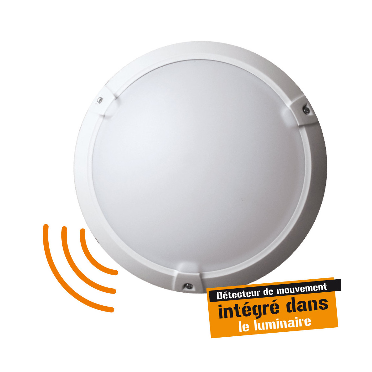 Hublot rond en plastique blanc à détection HF - douille E27 60W Maxi - IP65