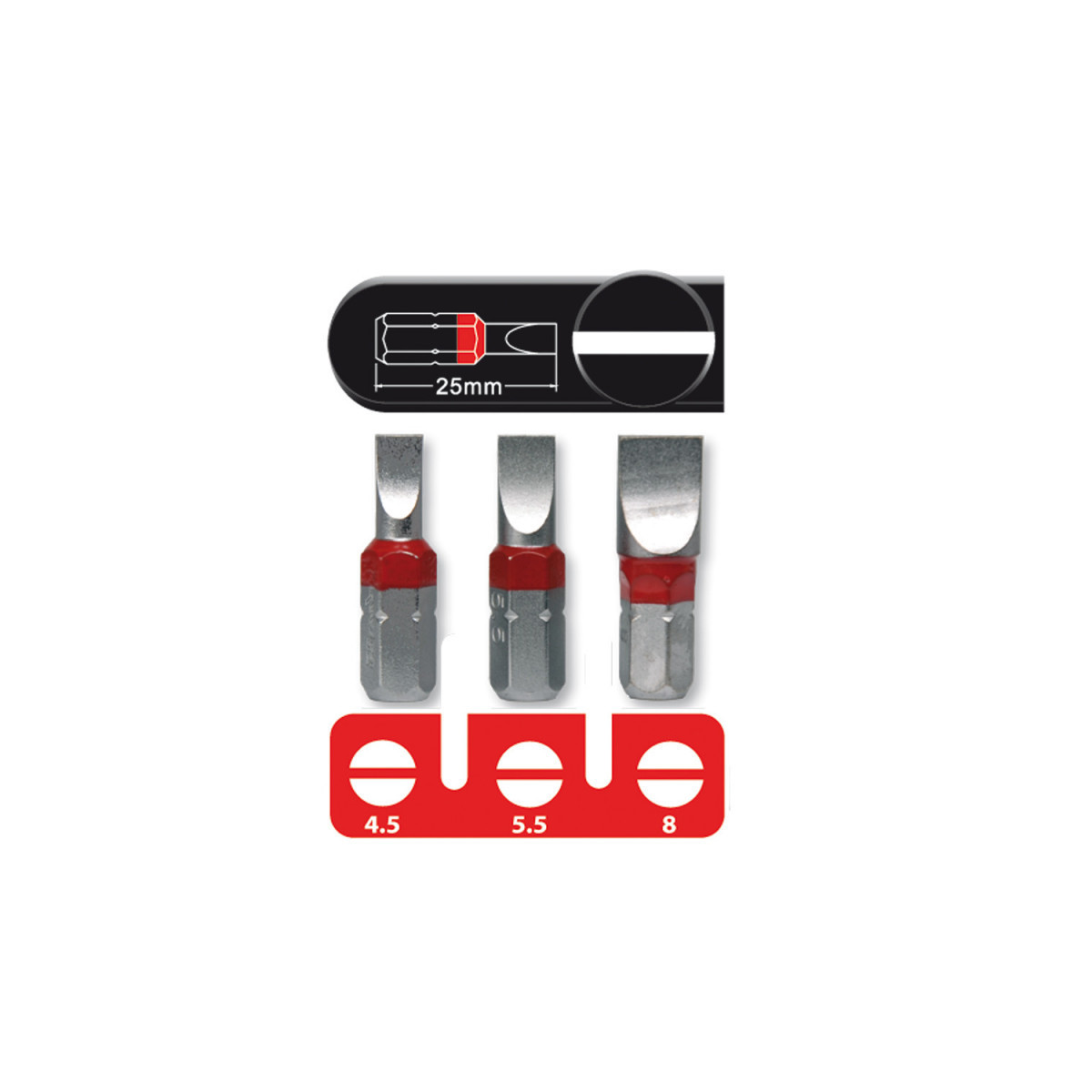 Jeu de 3 Embouts Plat 4.5/5.5/8 x25mm