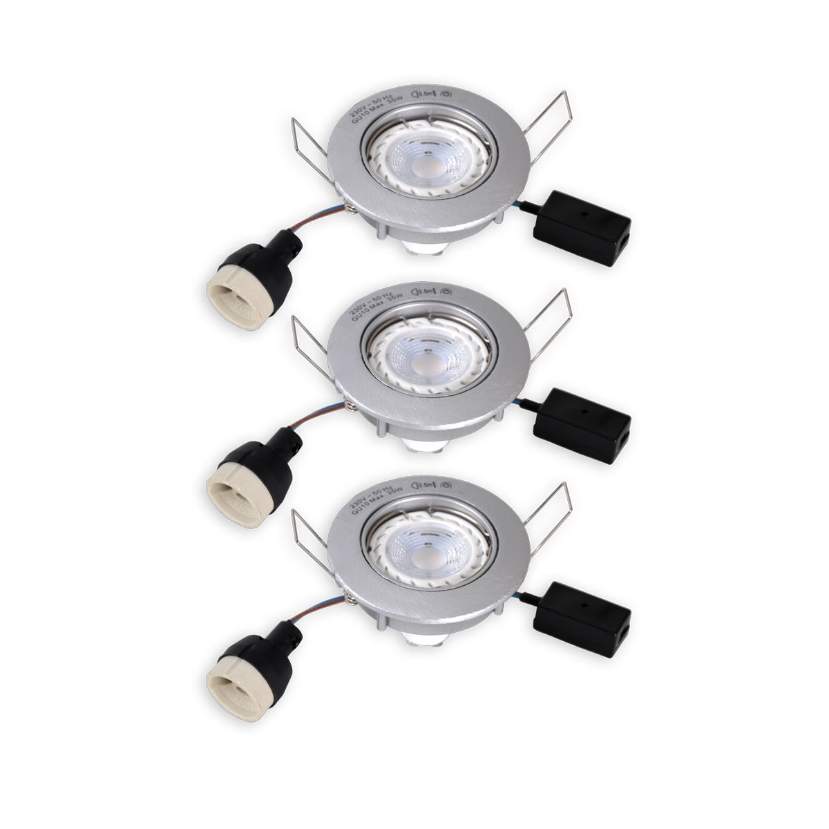 3 spots orientables aluminium brossé avec ampoules 5W - 3000K - 500 lumens - Ø94mm