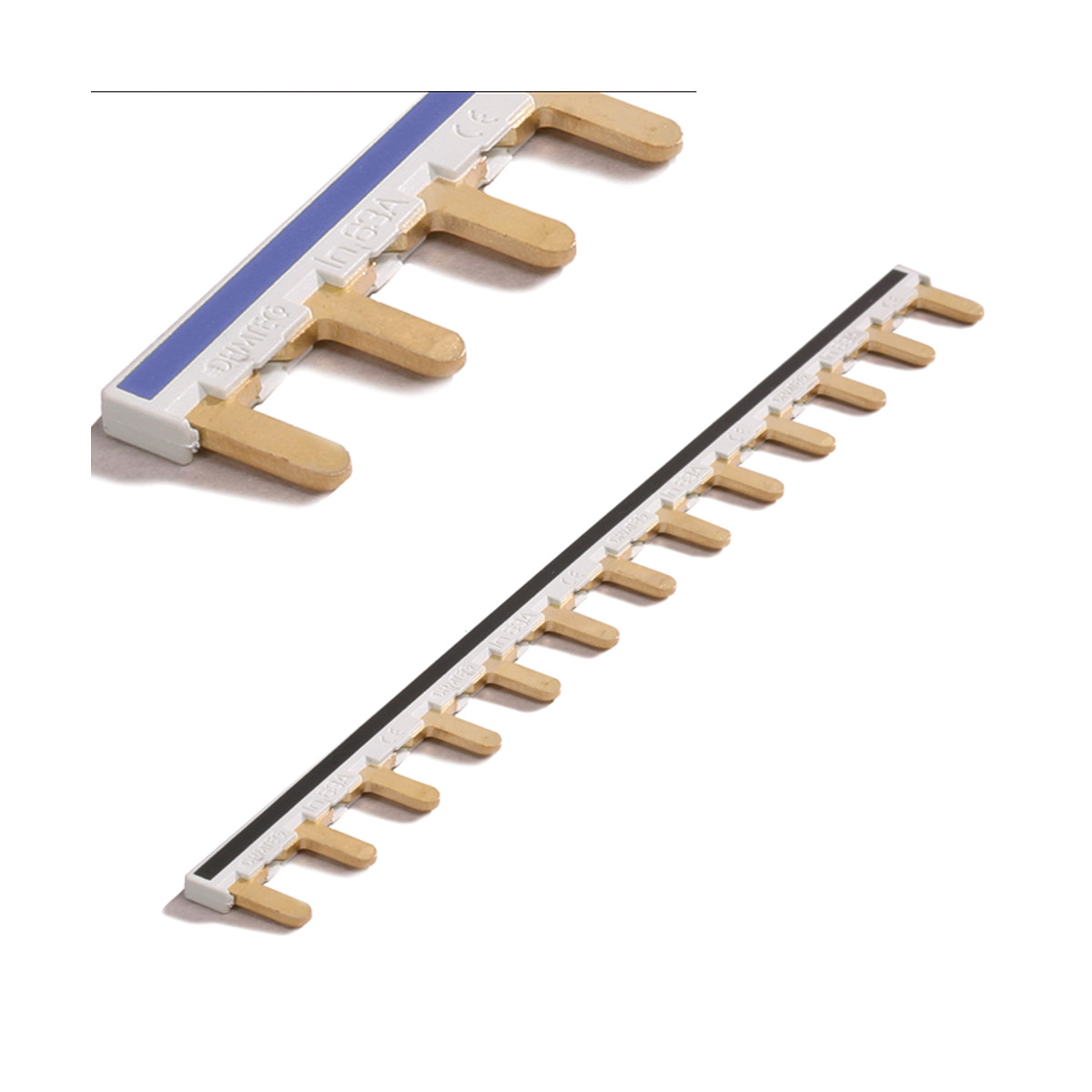 Ce peigne d'alimentation réversible OHMTEC s'associe aux connecteurs 423610 (3kA) pour alimenter l'interrupteur différentiel et les disjoncteurs à vis.