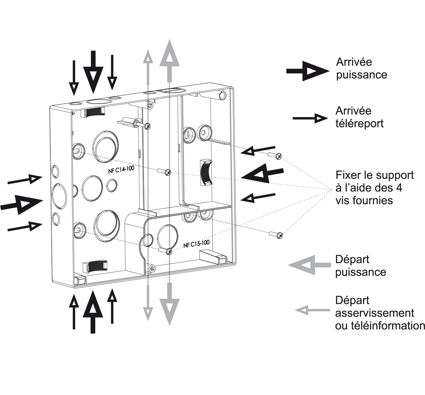 Ces appareils doivent être installés dans la gaine technique de logement (GTL). Aucun objet ou obstacle ne doit gêner la ventilation naturelle de ces appareils afin d’éviter les risques d'échauffement. De même, ces appareils ne doivent pas être placés à proximité d'un compteur à gaz, d'un évier, d'un poste d'eau, d'un appareil de cuisson ou de chauffage, dans une cuisine, une salle d'eau ou une chambre à coucher (Plus de détails sont disponibles dans la norme NFC 15-100).