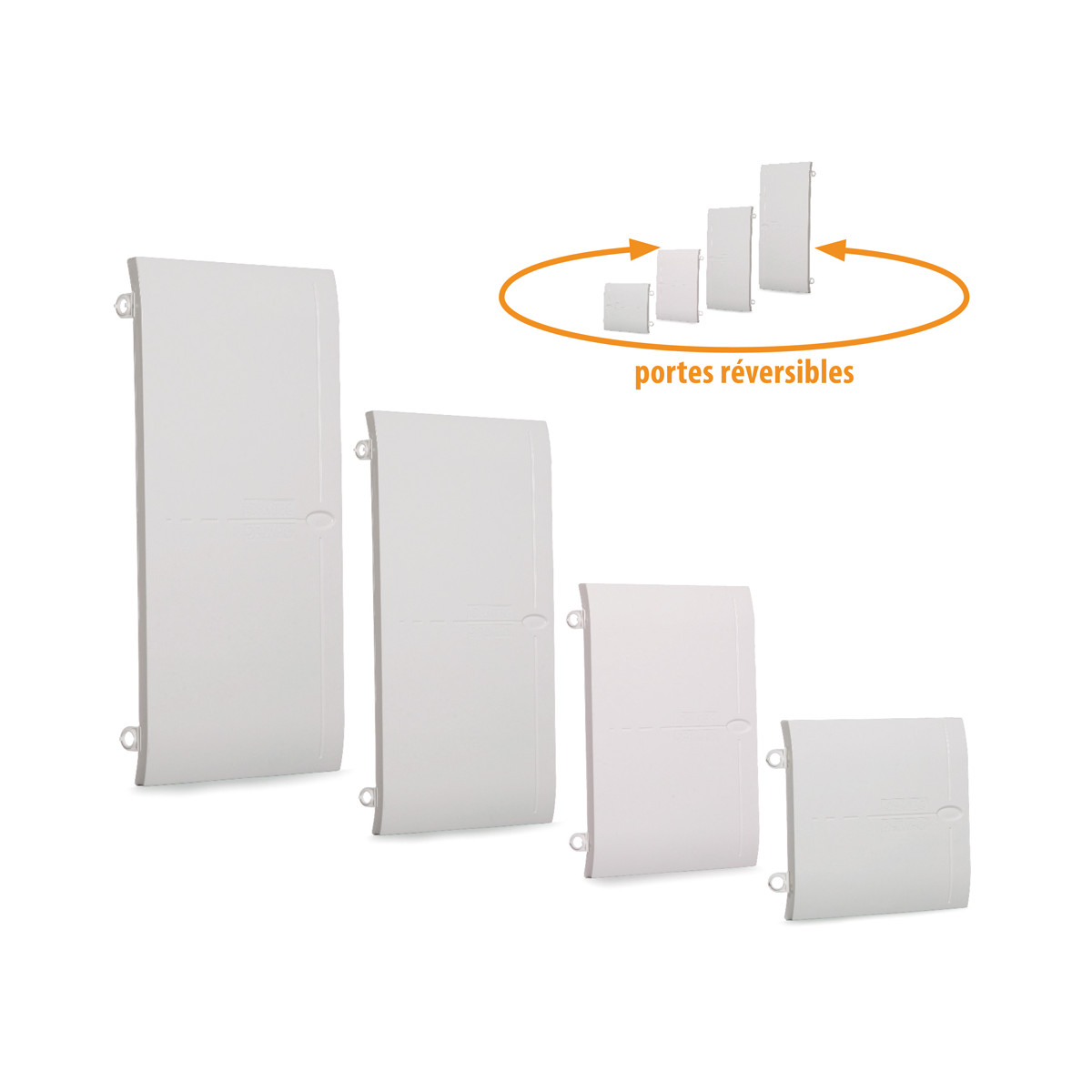 Cette porte réversible OHMTEC est compatible avec les tableaux électriques 2 rangées OHMTEC. Elle peut se monter à droite ou à gauche selon configuration