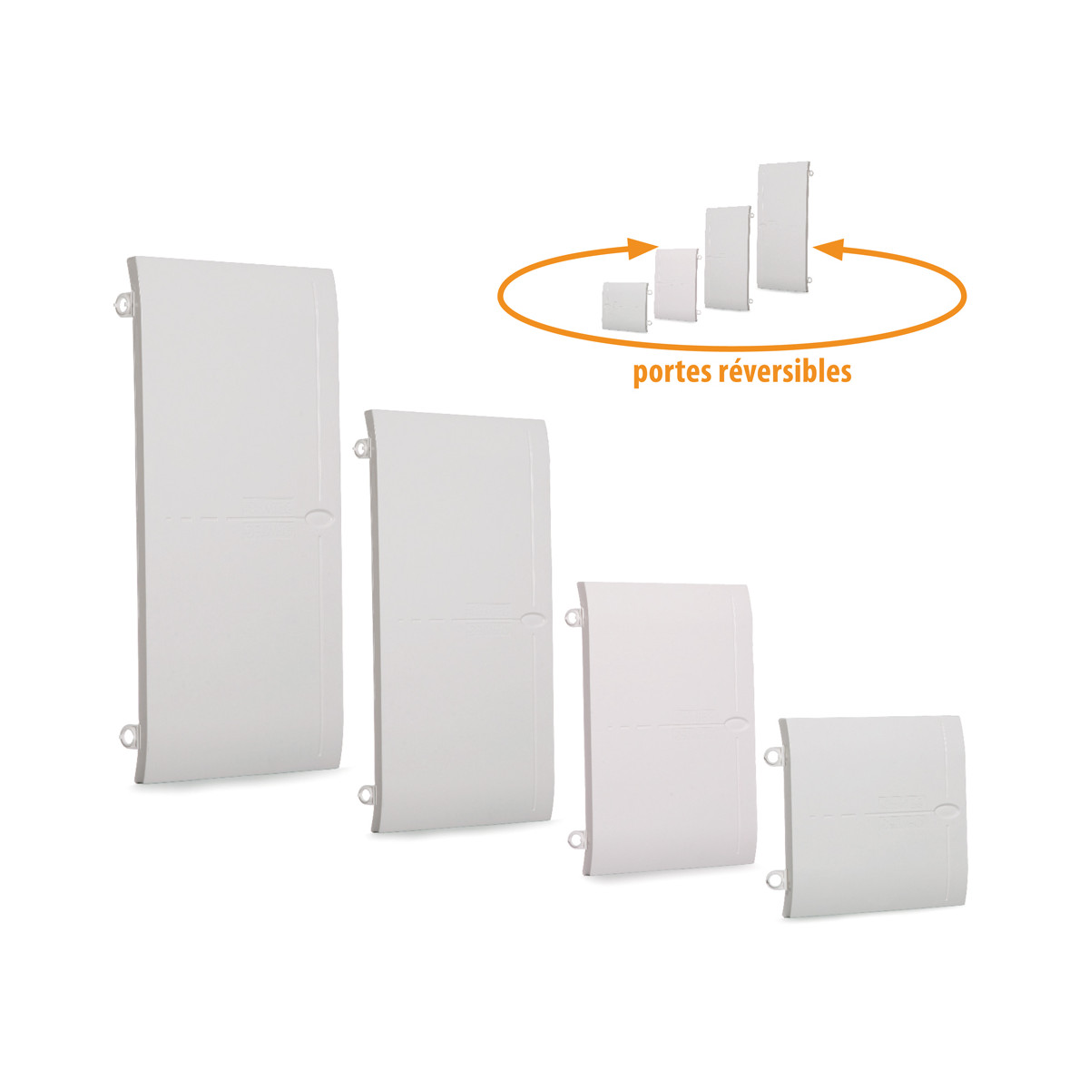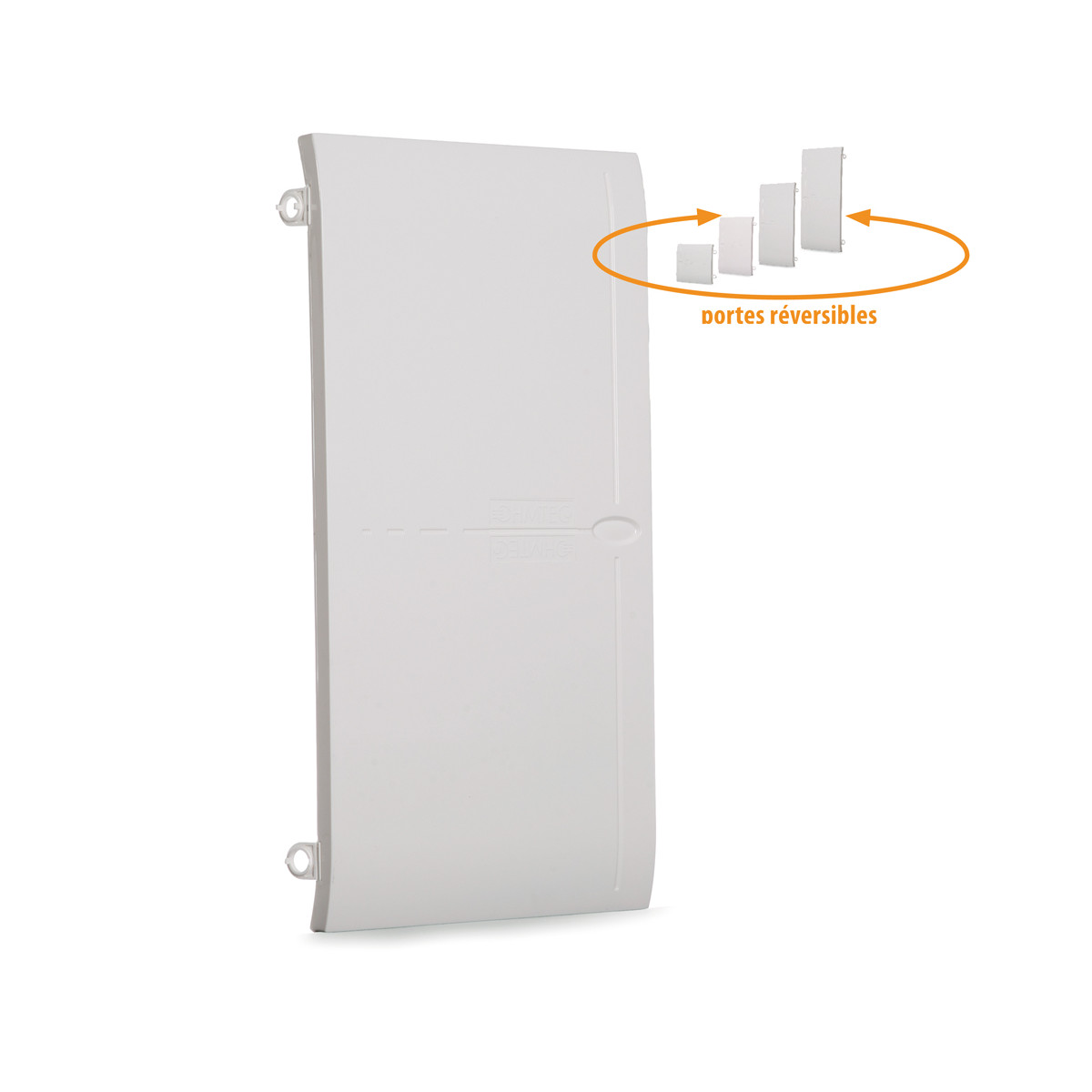 Cette porte réversible OHMTEC est compatible avec les tableaux électriques 4 rangées OHMTEC. Elle peut se monter à droite ou à gauche selon configuration