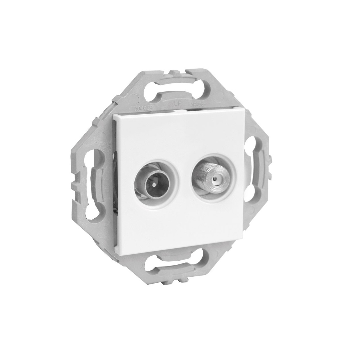Prise double pour câble coaxial TV et SAT. Connecteur blindé. Bande passante 0 à 2400 MHz.