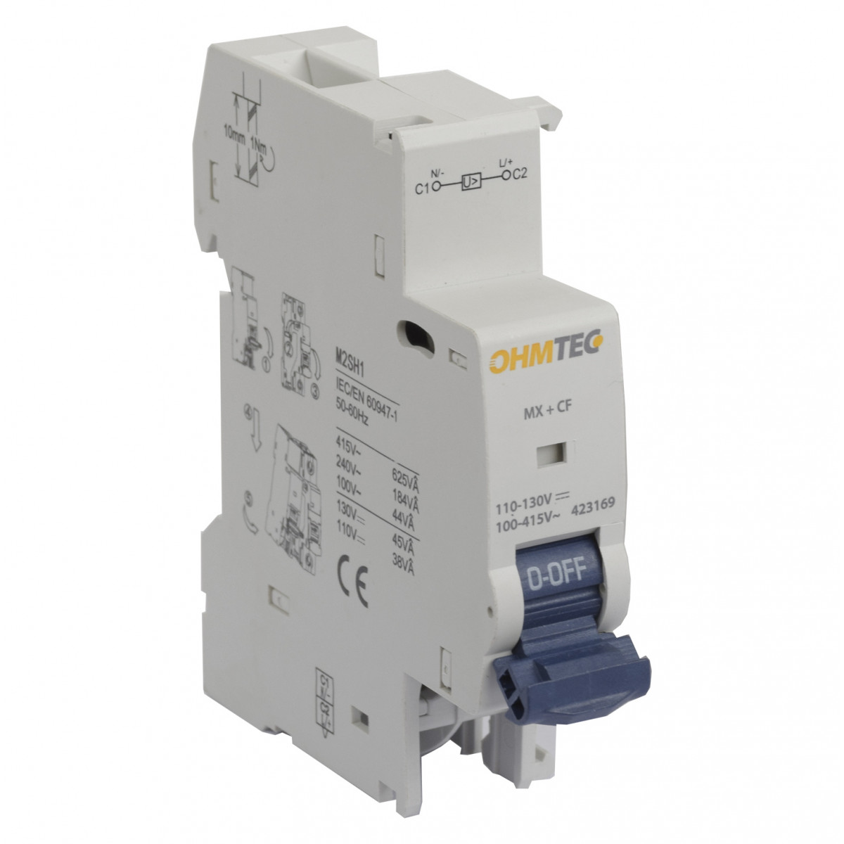 - Bobine de déclenchement à émission de courant MX à cabler (2 pôles) qui permet la désactivation d'un disjoncteur triphasé via un bouton d'arrêt d'urgence NO à distance - tension allant de 100V à 415V~ Raccordement en 2.5 mm² fil rigide ou fil souple