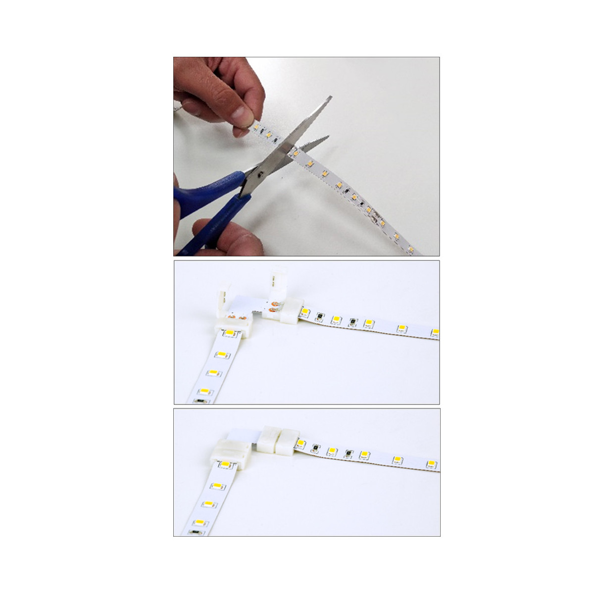 • 2 connecteurs à 90° pour ruban de 8mm - 2 broches