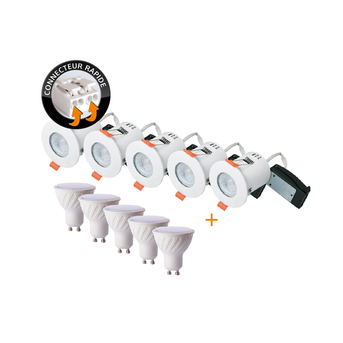5 spots à encastrer fixes recouvrables IP65 - Ø82mm - 10W maxi - livré avec ampoules 5W - 3000K - 400 lumens