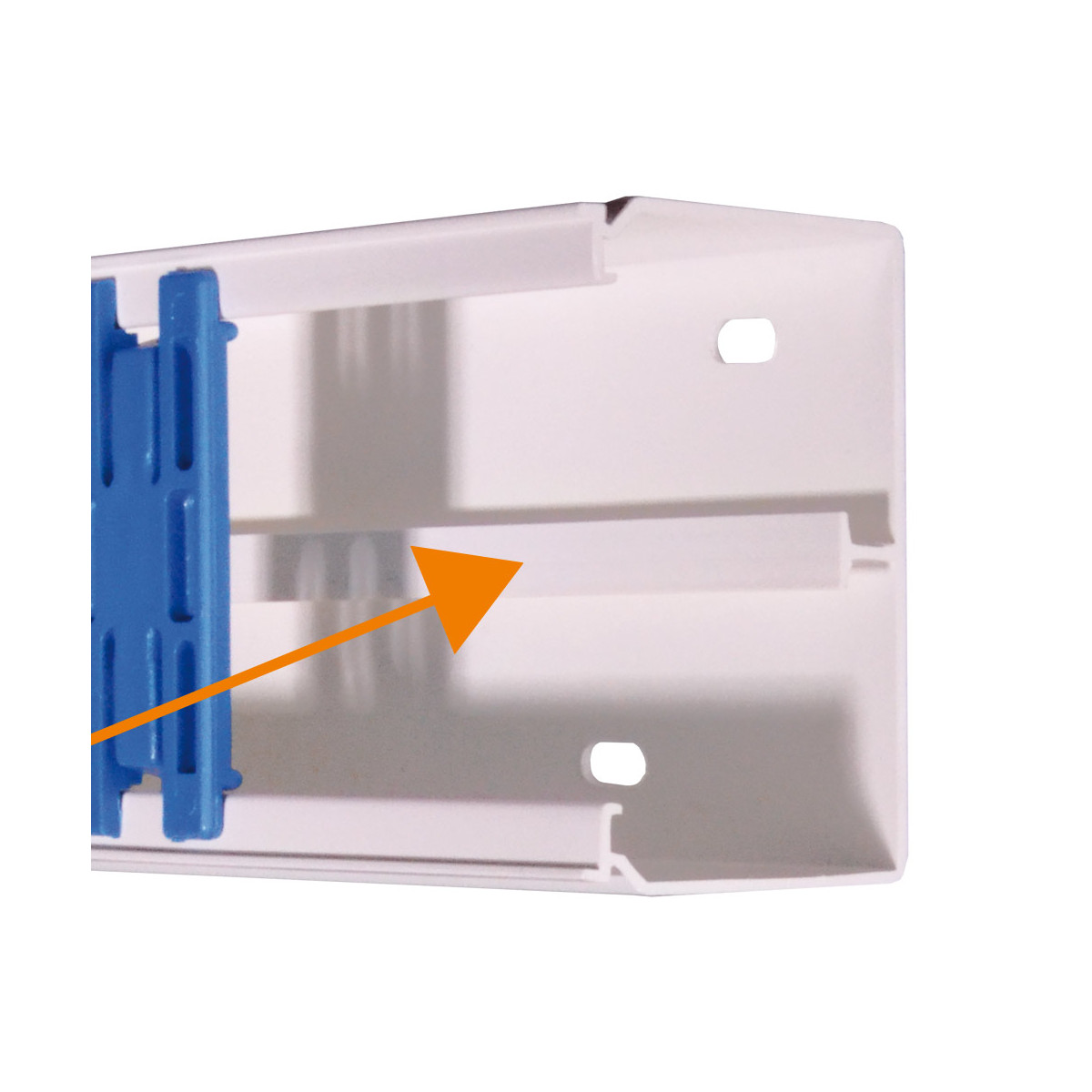 Modèle clipsable sur la goulotte 60x90mm, pour créer 2 compartiments.