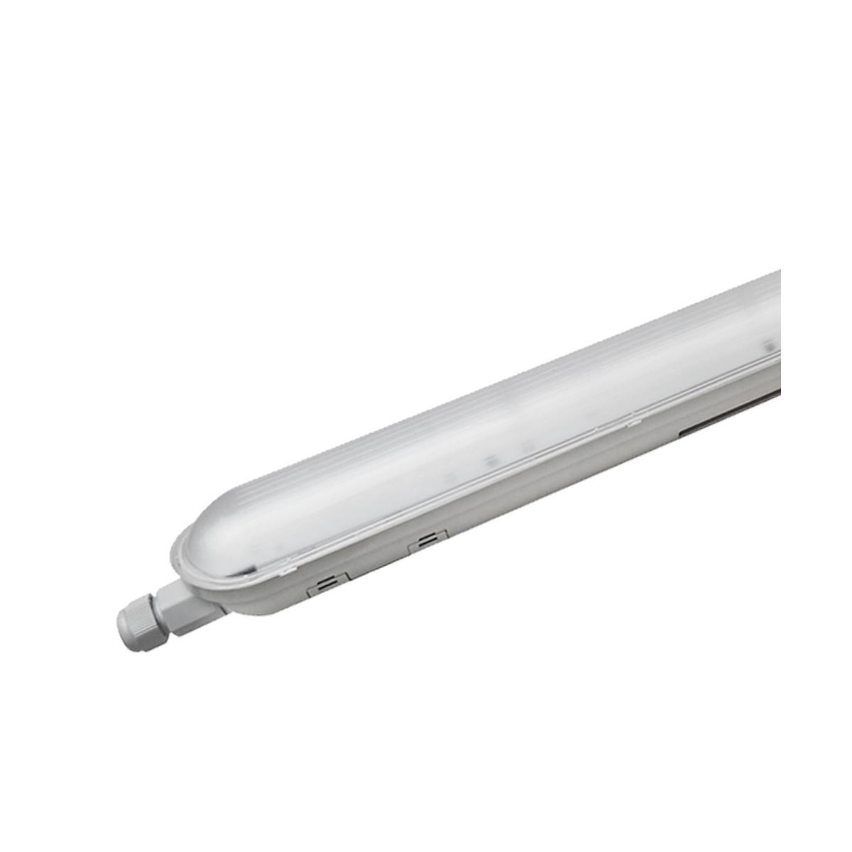 IK08. Cablage traversant. 2 presse-étoupes. Livré avec un bouchon d'étanchéité pour le presse étoupe. Angle d'éclairage de 120°. Connecteur rapide. Driver anti scintillement. Quantité maximale de réglette par ligne d'alimentation: 16