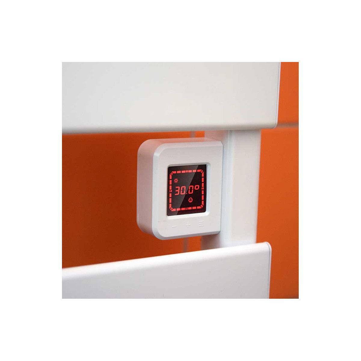 Résistance fil chauffant 700W. Soufflerie 800W Thermostat digital à fil pilote 6 ordres. Un Kit de fixation murale avec système de vérrouillage.