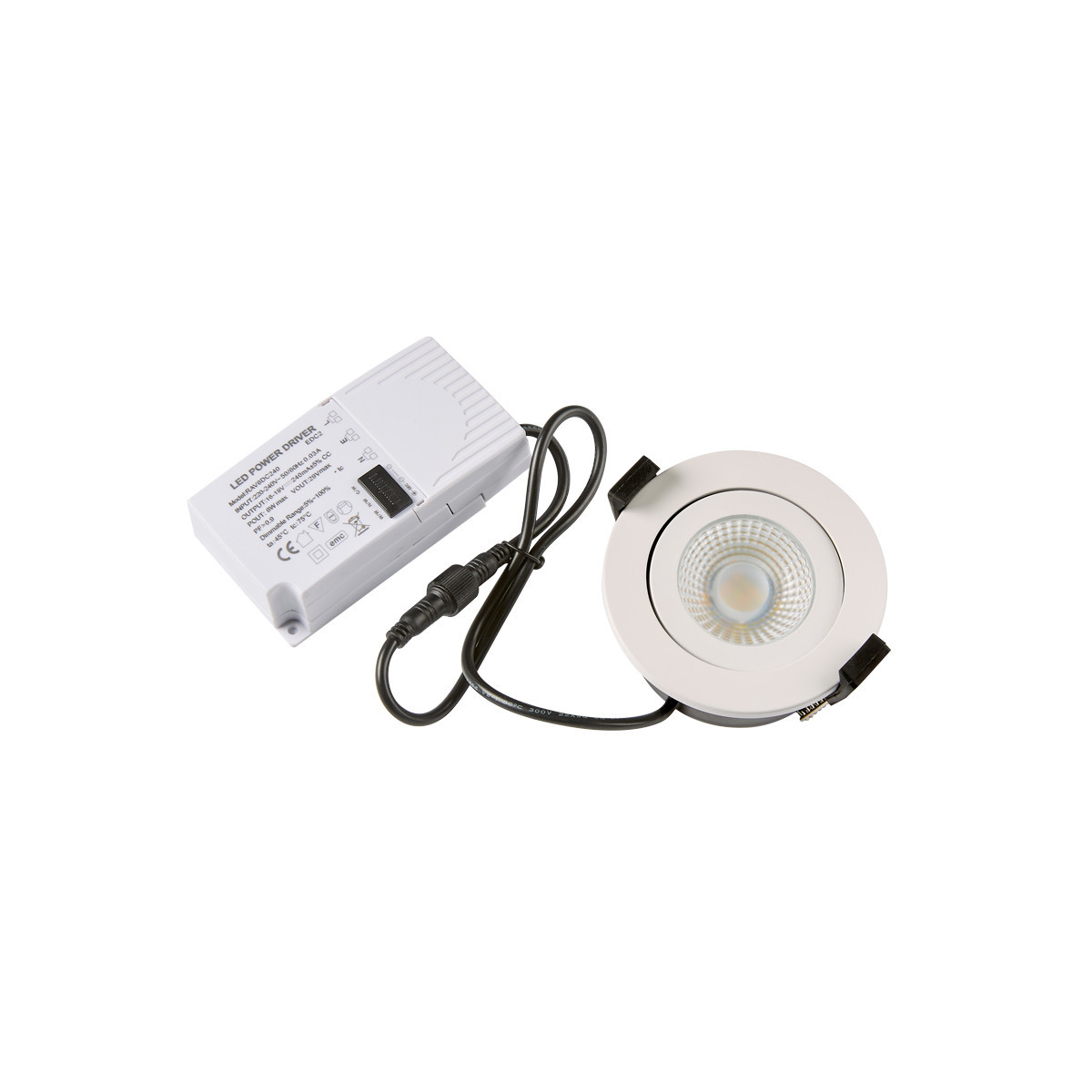 Spot à encastrer, orientable, variable et recouvrable Blanc - IP65 - Orientable +/- 30° - Driver TBTS - COMPATIBLE RT2012