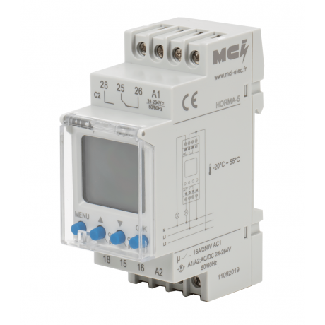 L'interrupteur horaire et astronomique OHMTEC à affichage LCD permet de contrôler des appareils ou fonctions électriques à une période choisie par l'utilisateur.