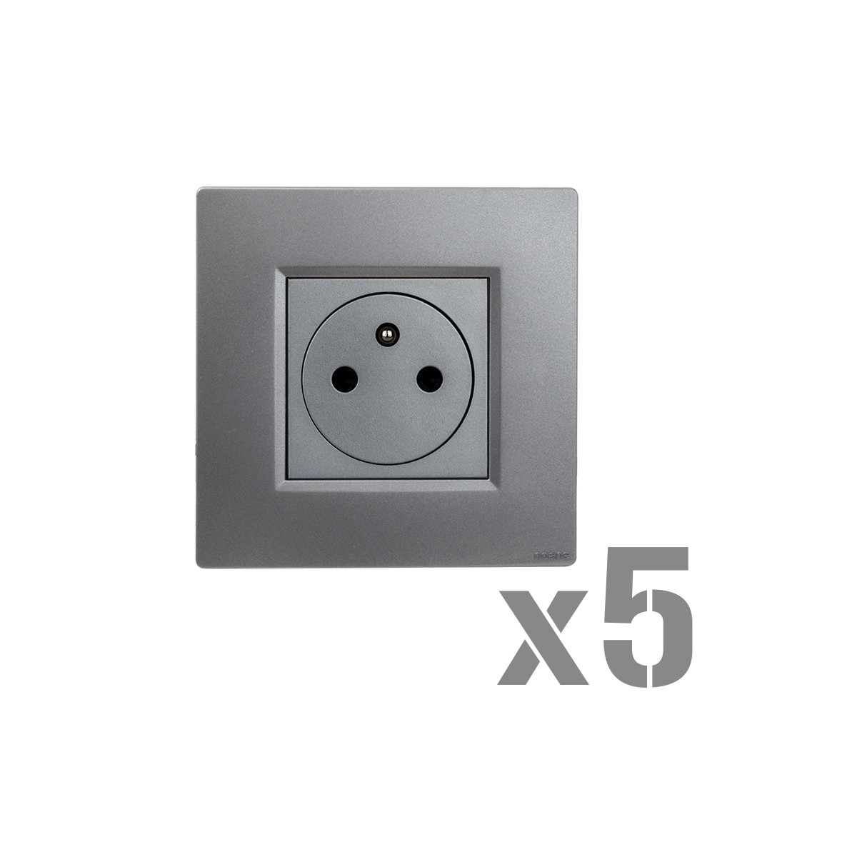 5 Prises 2P+T 16A affleurantes + 5 plaques gris alu