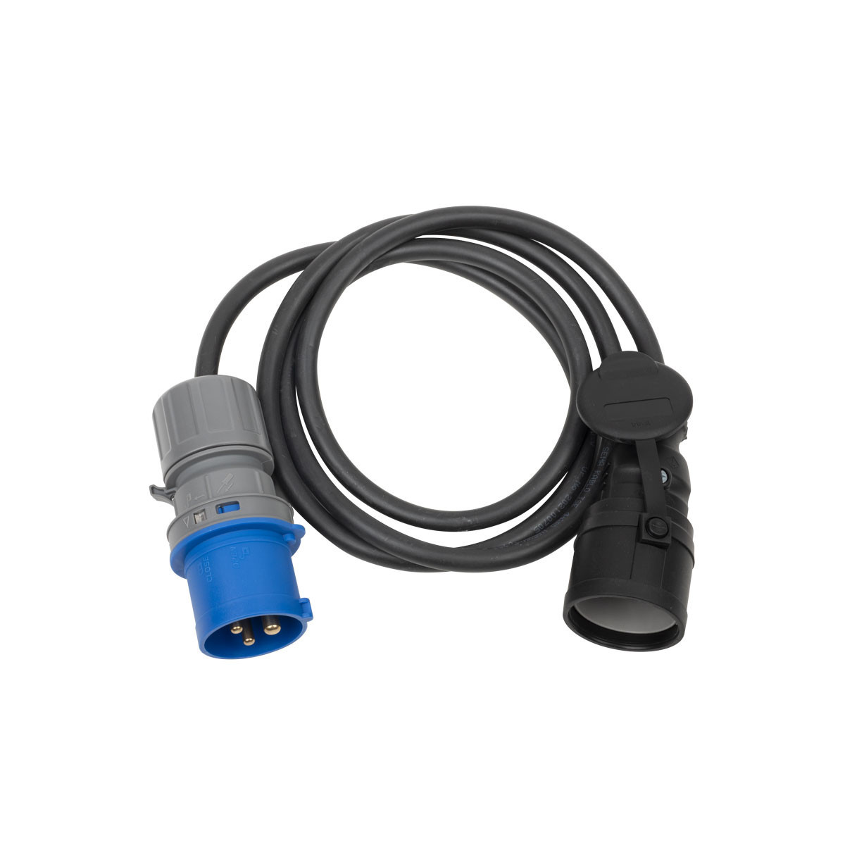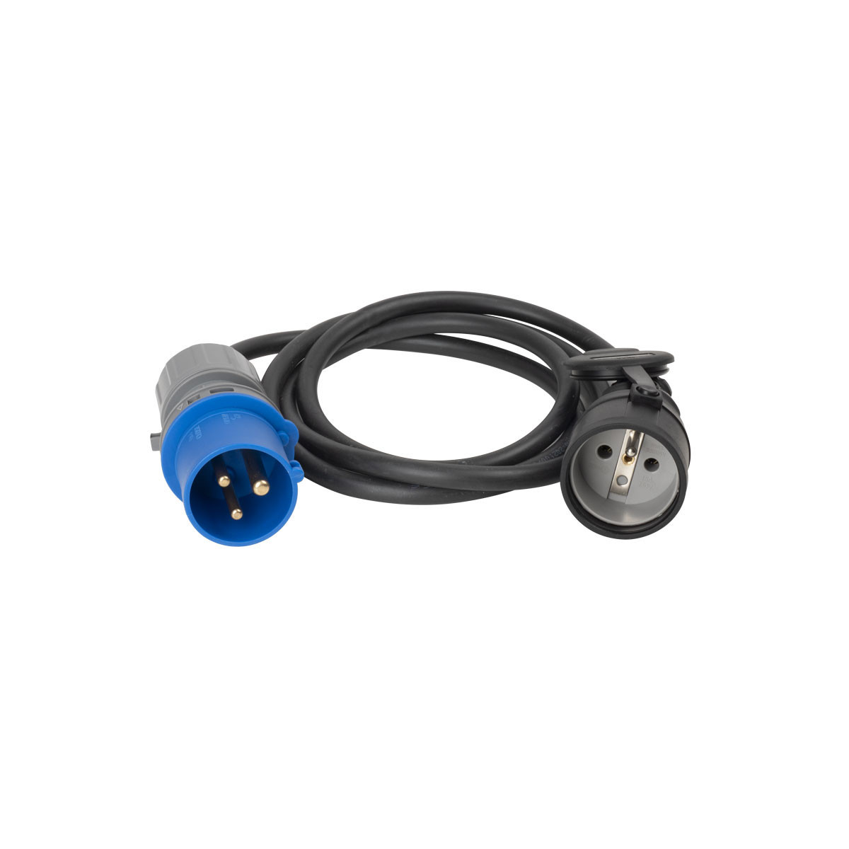 - 1 fiche CEE 10A-230V - 1 prise 2P+T 10A/16A 230V - Cable 3G2.5mm2 d'une longueur de 1,5m.