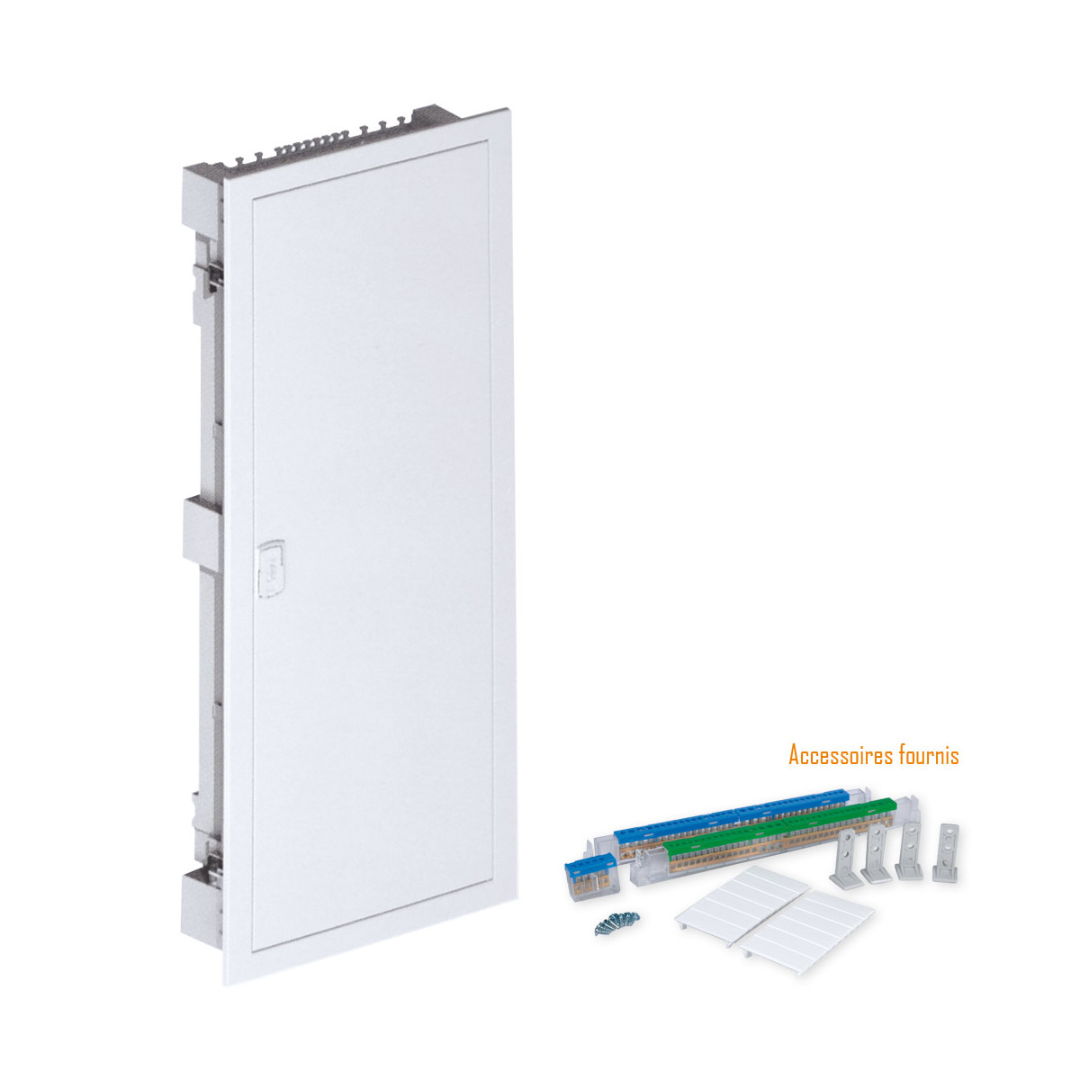 - Porte métallique réversible blanche RAL 9003 avec serrure optionnelle - Visserie pour cloison sèche - bornier de terre et neutre - obturateur - Niveau à bulle intégré pour le montage